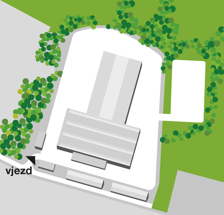 Складской парк, находящийся в управлении компании Levné sklady s.r.o., расположен в промышленной зоне города Кладуби-над-Лабем и представляет собой полностью огороженную и охраняемую территорию. В настоящее время он используется исключительно как площадка для производства и складирования как в закрытых ангарах, так и на открытых бетонированных площадках. Его расположение не создает проблем для окружающей среды или жителей городка при эксплуатации. Здесь имеются достаточные резервы мощности электроэнергии от собственной трансформаторной подстанции. Установлены все необходимые инженерные коммуникации (вода, газ, канализация, телефон).